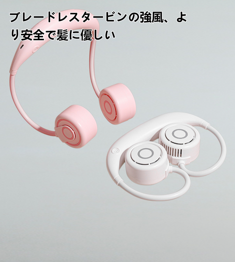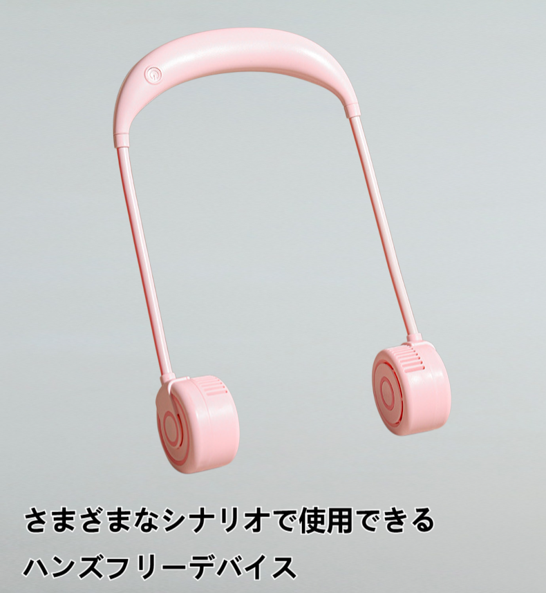 軽量無葉強力首掛けファンは、首に掛けて両手が使える無葉設計。静音・長時間稼働・風量三段階調整で快適な涼しさを実現。